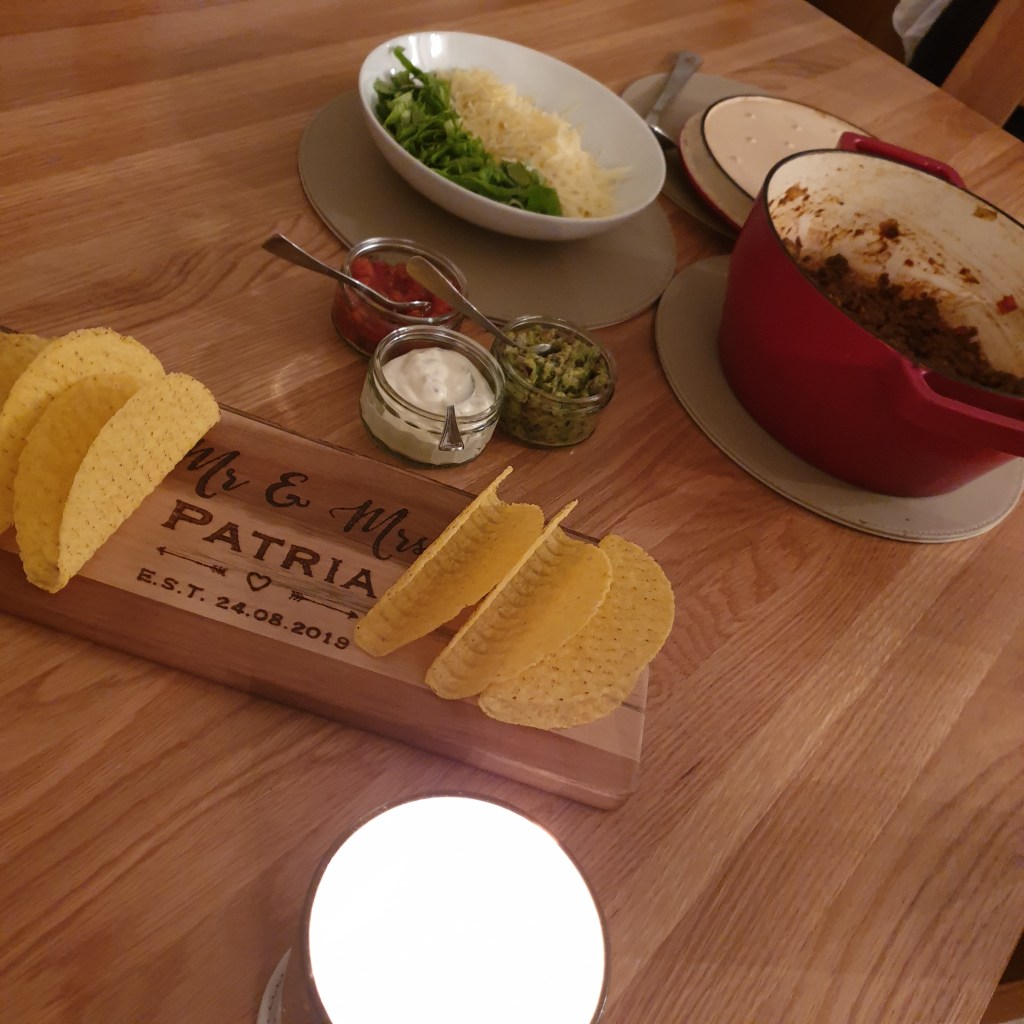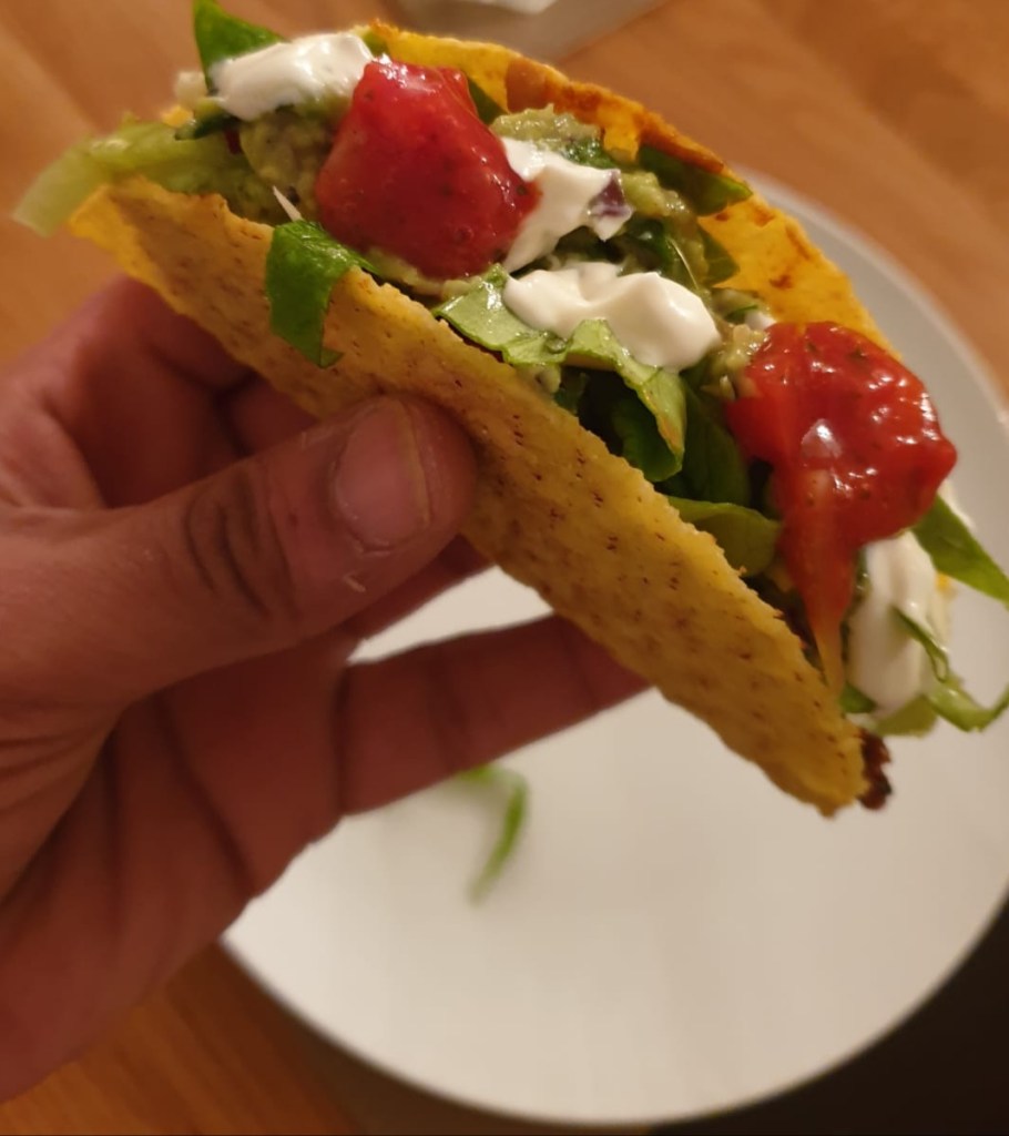 6. Heat tacos as per guidelines and serve with sour cream, guacamole and salsa.